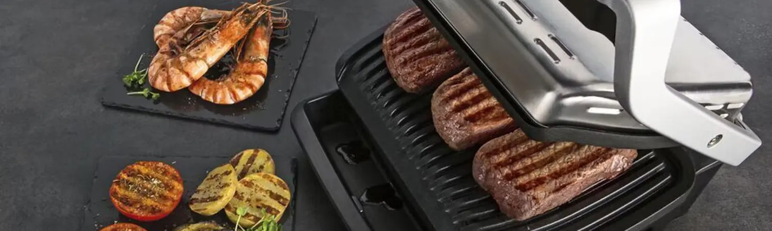 Avancerad bordsgrill med sensor som mäter maten och ger perfekt grillresultat. Sex automatiska tillagningsprogram för olika livsmedel: hamburgare, fågel, smörgås, korv, rött kött och fisk samt fyra manuellt inställda temperaturnivåer. Även utrustad med indikator som visar tillagningsnivån, från blodigt till medium och genomstekt. Med droppfat och löstagbara grillplattor med non-stick beläggning, blir rengöringen enkel.