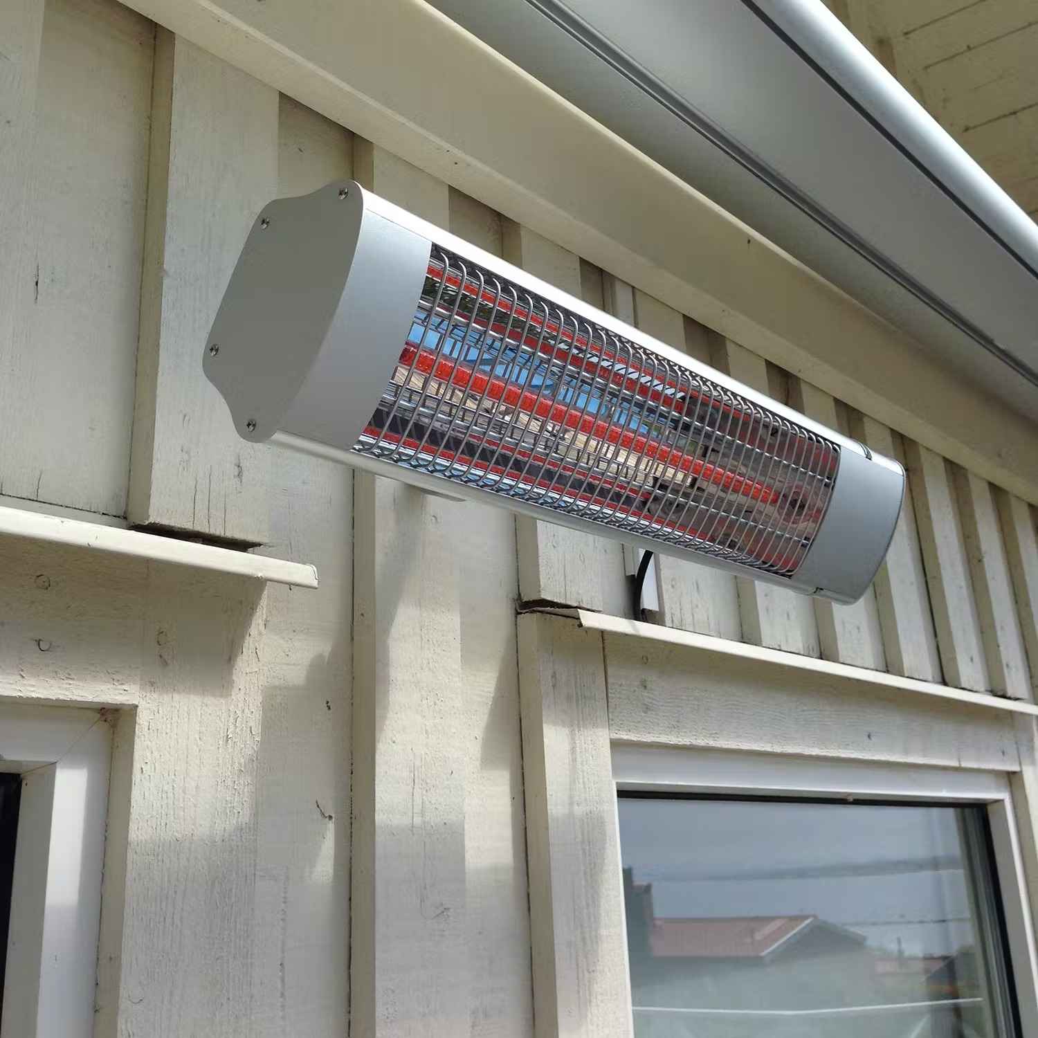 Hortus väggmonterad, infraröd terrassvärmare, som passar perfekt till montering under markiser och takfot. 92 % av energin konverteras till värme och ger värme till alla som sitter inom ett avstånd på 3 meter från värmaren. Värmaren har tre effektlägen och går att styra med fjärrkontroll.