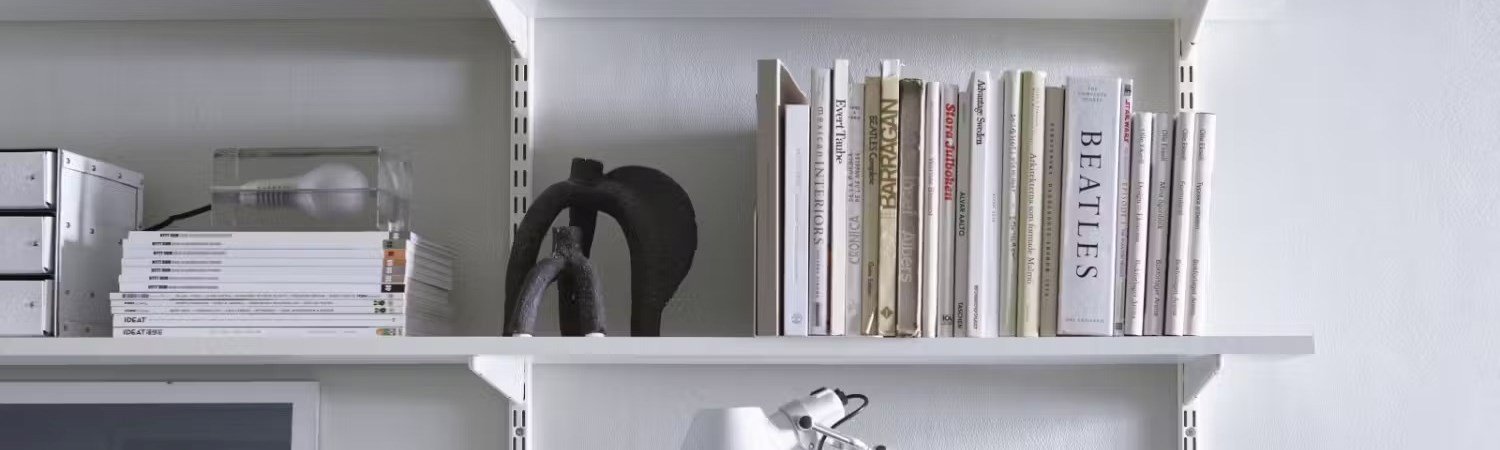 Om du bara är ute efter en mindre vägghängd bokhylla så har Elfa även ett färdigt kit som är superenkelt att sätta upp – en stilren lösning som passar lika bra i vardagsrum, sovrum eller kök.