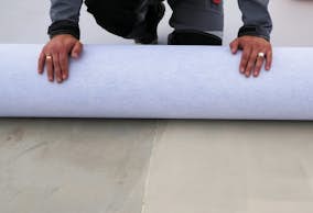 6. Skruva fast en regel (syllen) längs med din markering på golvet (med undantag för där ev. dörr/öppning ska vara). Vill du ha extra ljudisolering kan du lägga en syllisolering mellan golvet och syllen. Använd till exempel en gummimatta, är underlaget betong kan du ta grundpapp.