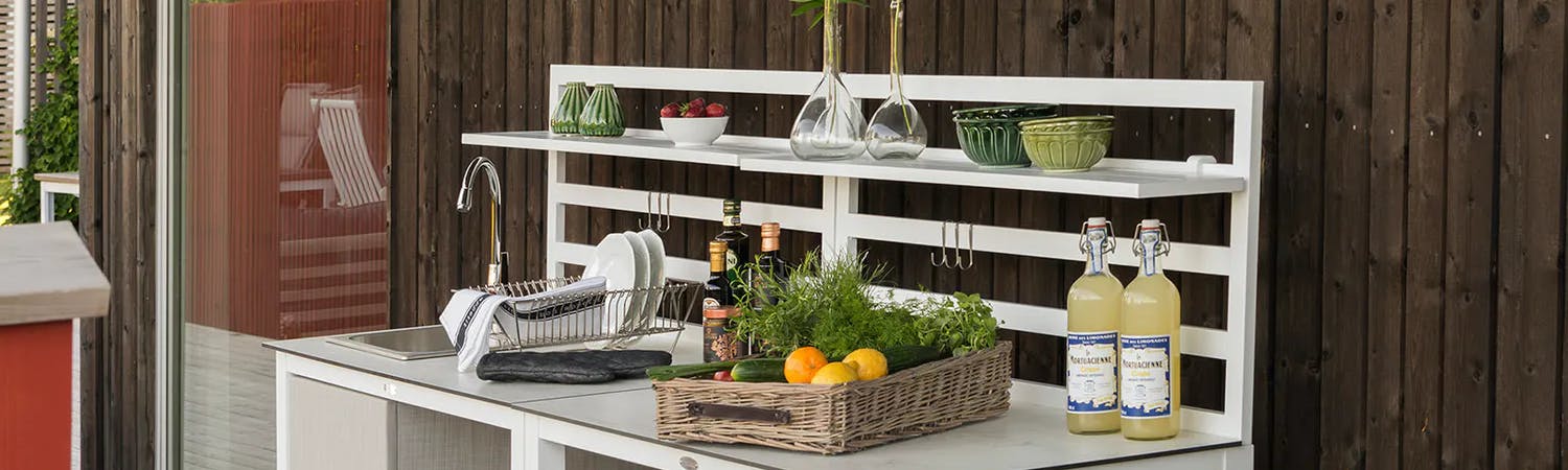 Utekök Läckö från Hillerstorp med diskho som passar perfekt till flera av varumärkets möbelgrupper.