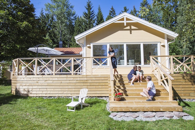 När familjen Lindblom skulle renovera sitt sommarhus var Bygghemma den självklara leverantören. Från byggstart till mål, från golv till tak. Nu har den ”ocharmiga sport- stugan” blivit ett luftigt och fräscht fritidshus som hela familjen älskar och där det finns gott om plats för gäster.