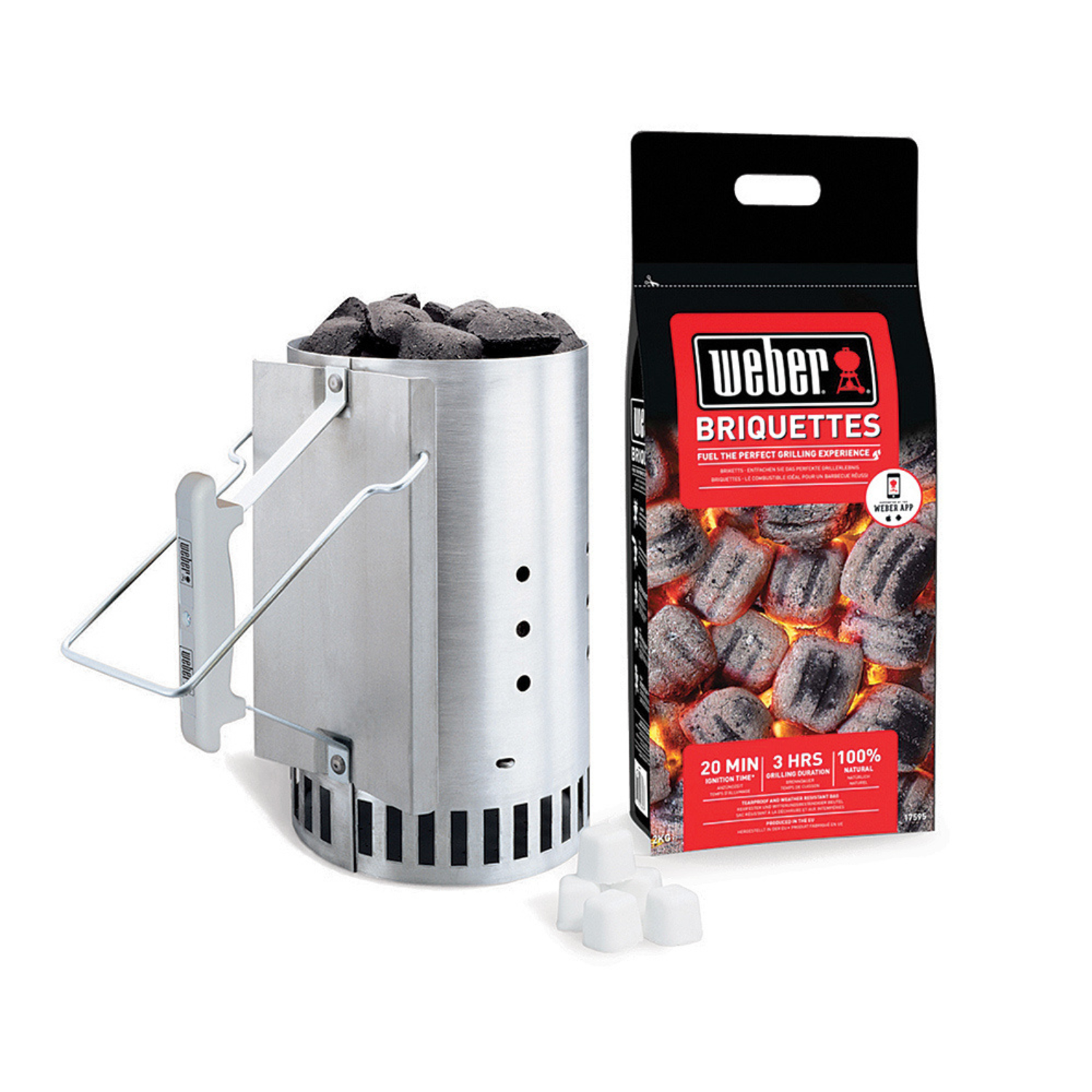 Med en skorstenständare är det enkelt att få briketterna varma. Du häller sedan ner briketterna i grillen och lägger på grillgallret.
