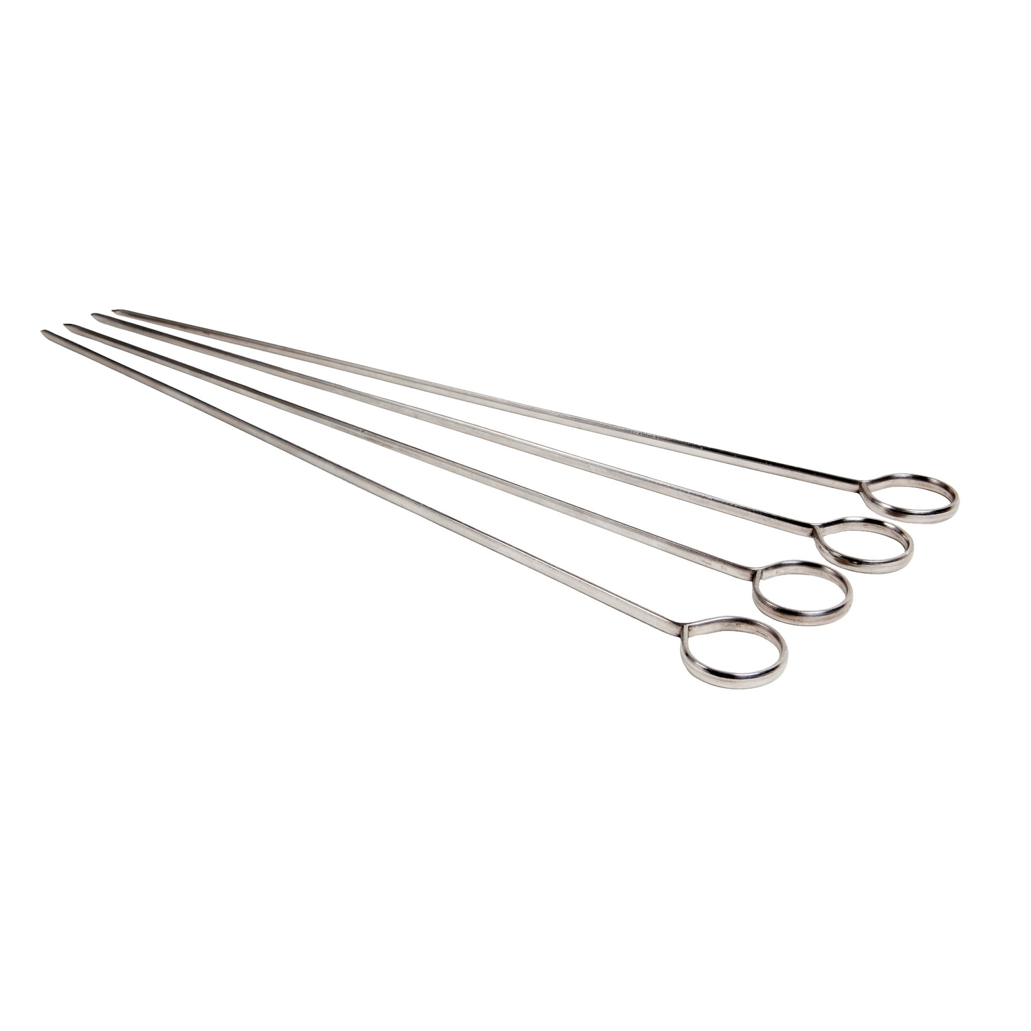 Grillspett i metall kan du använda om och om igen. Formen på grillspetten från Muurikka gör att maten hålls på plats och vänder sig när du vänder på spetten.