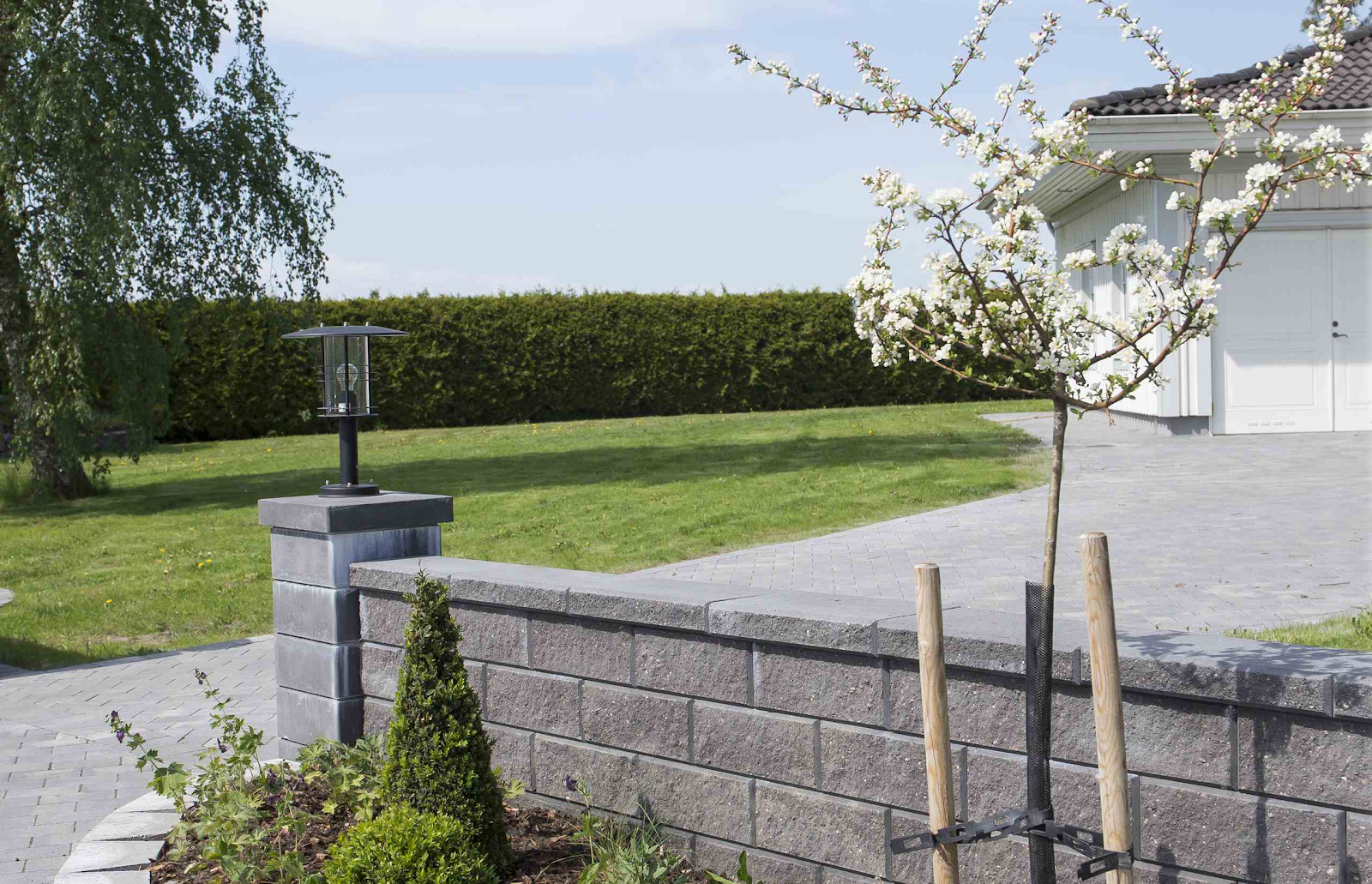 – Självklart ska växter också få plats i din nya trädgård. Tänk dock på att inte plantera buskar och träd för nära murstenen, annars kan rotsystemet knuffa ut muren när de blir större. Komplettera även gärna muren med stolpelement och stolptopp samt avsluta med en avtäckning och eventuellt ett staket för säkerhets skull.