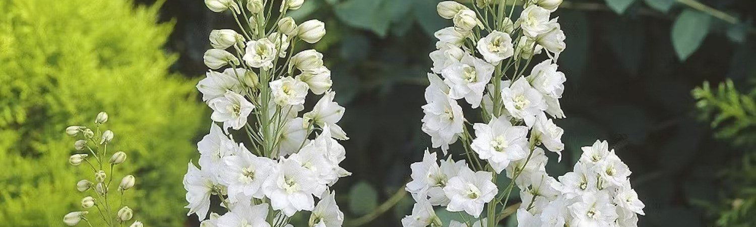 En ståtlig perenn blomma som kan bli hela 150 centimeter i höjd och passar utmärkt att plantera solitär i trädgården. Trädgårdsriddarsporren gör sig fin i sommarbuketter och blommar i juli-augusti.