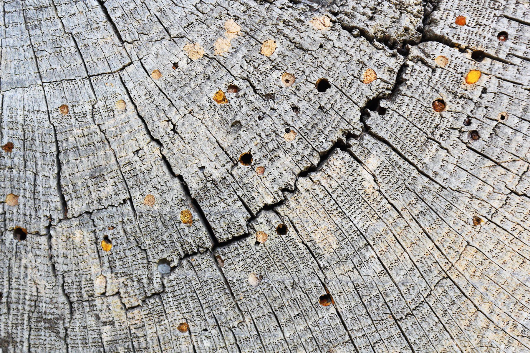 - ljust borrmjöl i gångarna i virket
