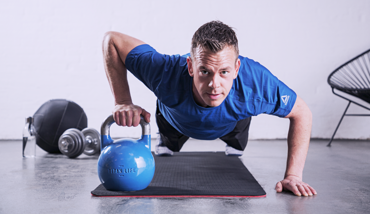 – Om man inte har tiden att komma iväg till gymmet skulle jag rekommendera att arbeta så mycket som möjligt med kroppen. Exempel på bra övningar är knäböj och knäböj med upphopp (som då blir mer explosivt). Men även dips mot en stol, armhävningar och planka med knäindrag är exempel på övningar som är effektiva att träna hemma. Kompletterar du med Kettlebells, hantlar, powerband och skivstång med vikter, så kommer du riktigt långt.