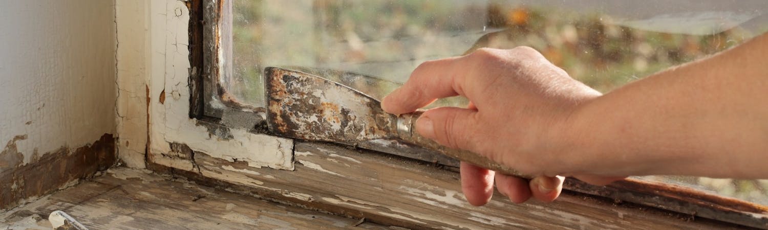 Det är enkelt att ta bort gammalt fönsterkitt. Det enda du behöver är ett föremål som inte är alltför vasst, exempelvis en kittkniv eller ett stämjärn. Använder du ett för vasst verktyg riskerar du att skada träet i fönsterbågen. Var noga med att få bort allt skadat kitt på fönstrets nedre del, eftersom det är den del som har störst risk att angripas av röta om fönsterrenoveringen inte görs noggrant. När du tar bort gammalt fönsterkitt ska du också arbeta noga, särskilt i hörnen, så att du inte skadar fönsterrutan eller träbågen.