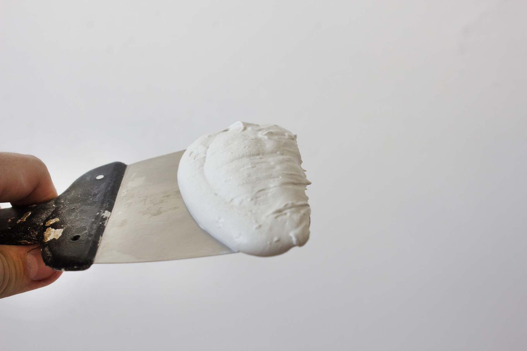 För att få en helt jämn yta bör du applicera spacklet i flera tunna lager istället för att försöka täcka allt med ett tjockt lager. Räkna med 2-3 lager totalt.