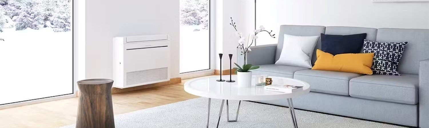 En golvstående luftvärmepump är ofta lätt att placera och fördelar värmen jämnt i din bostad. Jämfört med vägghängda modeller är de vanligtvis lite tystare och kan placeras så att de motverkar kallras från fönster.