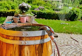5. När du fått bort det mesta skräpet i hängrännan kan du skölja den med vatten. Använd en vattenslang, tryckspruta eller vattenkanna.