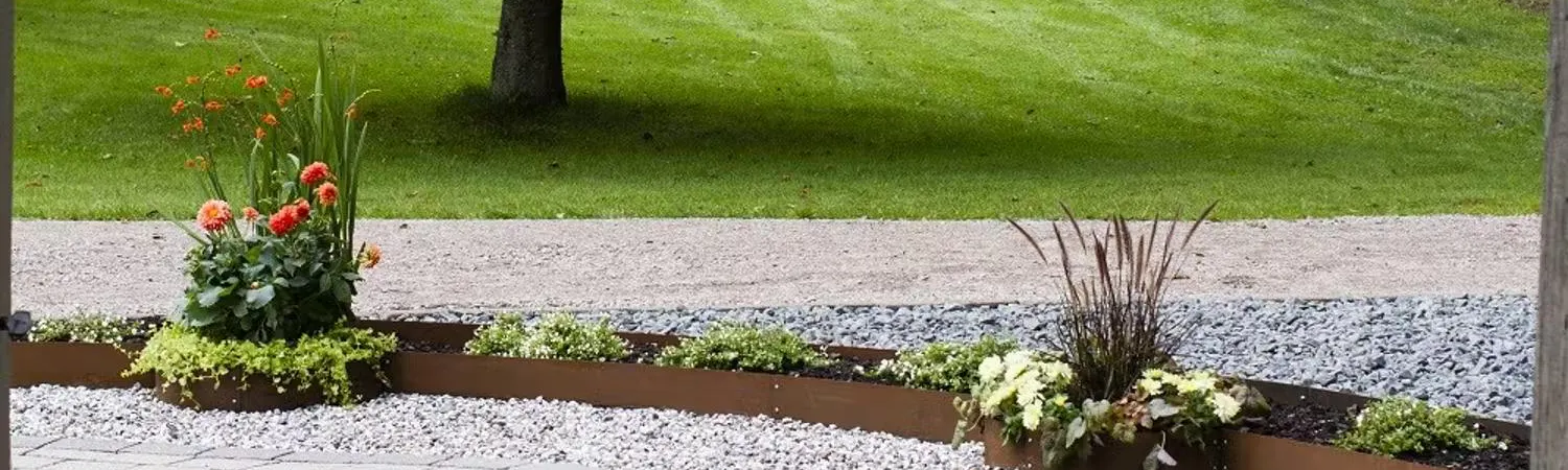 Runda rabatter ger ett spännande och samtidigt välordnat intryck i trädgården. Perfekt för att skapa mindre öar eller längre planteringar med rundade former.
