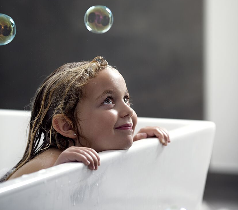 – Med vilja går allt! Skämt åsido, om två personer ska bada samtidigt bör man nog välja ett badkar som är 170 cm långt och 80 cm brett. Men tänk på att en bred sarg kan stjäla utrymme invändigt. Därför är det bra att också titta på badkarets volym. Välj gärna ett badkar som inte har bräddavlopp, då får man ut maximalt med baddjup. I traditionella plåtbadkar med bräddavlopp blir baddjupet kanske bara 30 cm, medan i mer moderna badkar är det ofta upp emot 50 cm. Det är ganska stor skillnad!