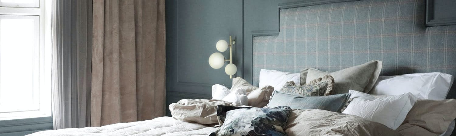 Savoy vägglampa sprider en stämningsfullt ljus i sovrummet samtidigt som den fungerar som praktisk läslampa.