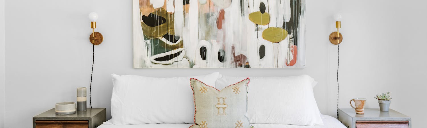 Ibland är det svårt att veta vad man ska göra med utrymmet ovanför sängen. Med en eller flera tavlor skapar du en snygg inramning, samtidigt som du har möjlighet att sätta rätt stämning i sovrummet. Här går vi igenom några råd på vägen och tipsar om fem olika tavel-lösningar.