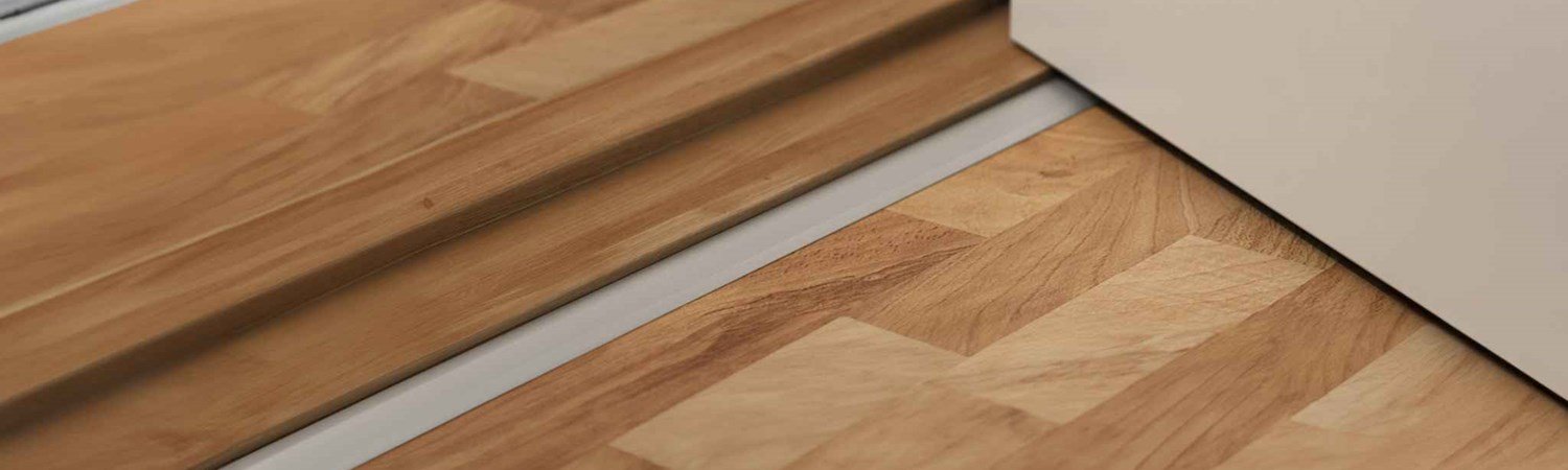 Om nivåskillnaden är mindre än ca 5 mm kan en vanlig tröskelplatta vara tillräckligt för att täcka skarven. Men när skillnaden är större är den bästa lösningen att montera en nivålist, då en sådan kan jämna ut upp till ca 17 mm i nivåskillnad. Du kan välja mellan flera olika träslag beroende på vilket utseende du vill ha och du hittar även nivålister som är tillverkade i aluminium.