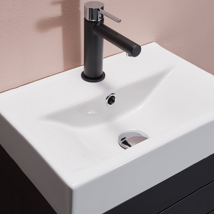 Ett kompakt tvättställ perfekt för det lilla badrummet. Tvättstället har en modern design med raka kanter i kombination med mjuk sluttning i bottenventlien, är tillverkat i porslin och har överfyllnadsskydd. Installeras i ett matchande tvättsställskåp i Hafa Go-serien eller monteras på väggen.