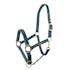 Textilgrimma fodrad med mjuk frotté över nacken och över nosen. Den har en vackert guldfärgad HANSBO SPORT-plakett på sidan och guldfärgade metallbeslag samt vävd logga över nosryggen.
