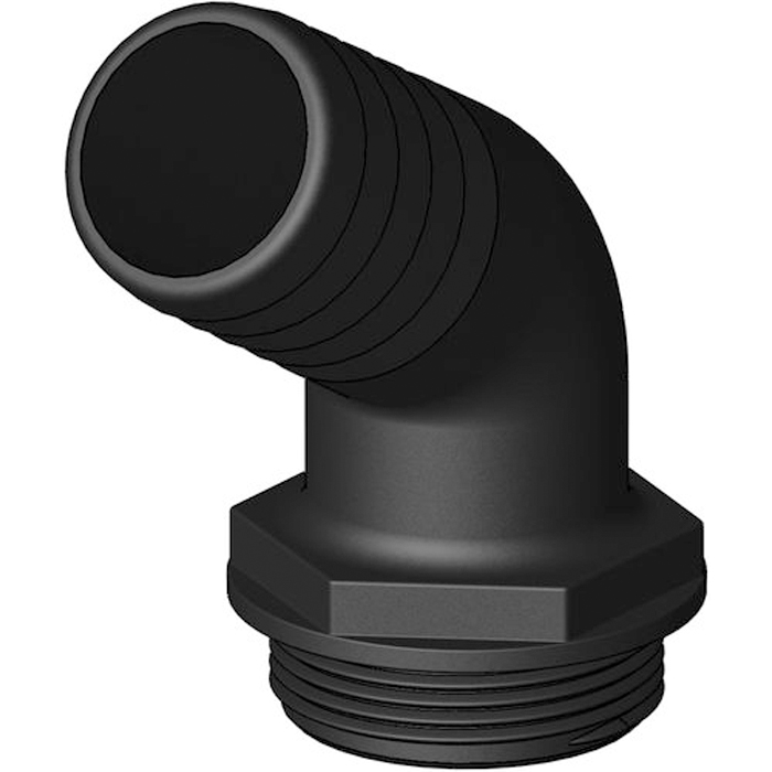 Koppling Tru-design till Aquavale 120 är en vinklad slangkoppling till Tru-Designs y-ventil. Den har 1 1/2" gänga och levereras med tjockare packning för möjlighet att bestämma var slangkopplingen ska peka.
