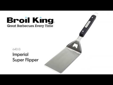 Den extra stora grillspaden "Super Flipper" från Broil King® är tillverkad likadant som den professionella grillspaden men med ett blad som är nästan dubbelt så långt för att vända fler hamburgare eller större matstycken på grillen. Tillverkad av högvärdigt rostfritt stål med inbyggd krok och hållfast handtag i värmebeständig, härdad plast med Broil King®-logotypen i rostfritt stål. Mått: 47,5x9,5x3 cm.