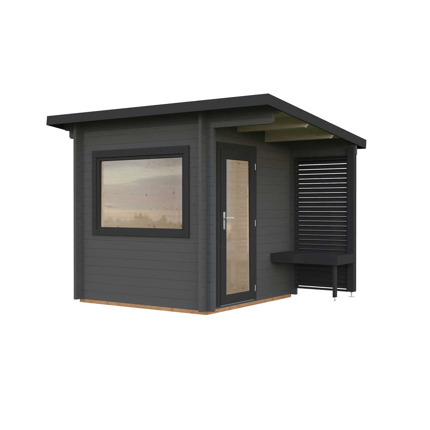Förråd Stig av prefabricerade väggblock med en stilren, skandinavisk design. Förrådet med pulpettak ger ett modernt uttryck och som passar in i din trädgård, samtidigt som du får ordning bland dina saker. Isolerad dubbeldörr med riktig lås. Levereras i en komplett byggsats av färdiga väggelement och med alla nödvändiga fästelement. Övriga detaljer är färdigkapade så att du själv enkelt ska kunna bygga ihop ditt förråd.