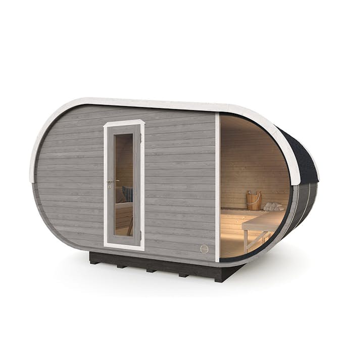 Oval Bastu DROPPE har ett halvglasfönster på den främre väggen, vilket ger bastubadaren möjlighet till att se sjön, bergen eller någon annan spektakulär utsikt. Bastun är också i helt rätt storlek för en bekvämare komfort. Den nya modellen ger nämligen bastun en platsbesparande men bekväm bastuupplevelse. Trots hänsyn både till budget och funktion är denna modell dock lika vacker inifrån och ut! Bastun har även många uppdaterade funktioner som exempelvis ryggstöd och bänkar.