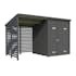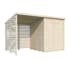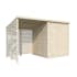 Leif är en praktisk förråd med utbyggnad för förvaring av trädgårdsredskap, gräsklippare, trädgårdsdynor etc. Förrådet är tillverkat av prefabricerade väggelement och är enkelt att montera. Dubbeldörrar på framsidan gör det enkelt att ta in större föremål som trädgårdsmaskiner och trädgårdsmöbler. Praktisk sidobyggnad för förvaring av t.ex. ved, cyklar etc. Levereras som byggsats inklusive golv och alla infästningar.