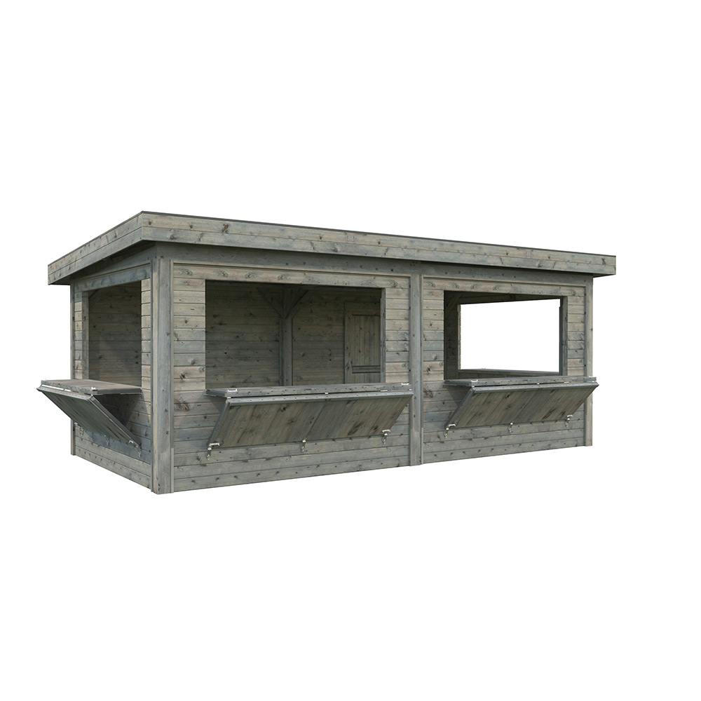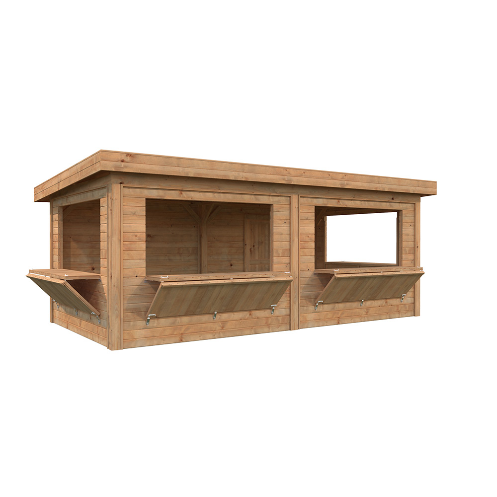 Denna rymliga kiosk med två luckor kan användas på marknader, mässor, idrottsplatser etc.