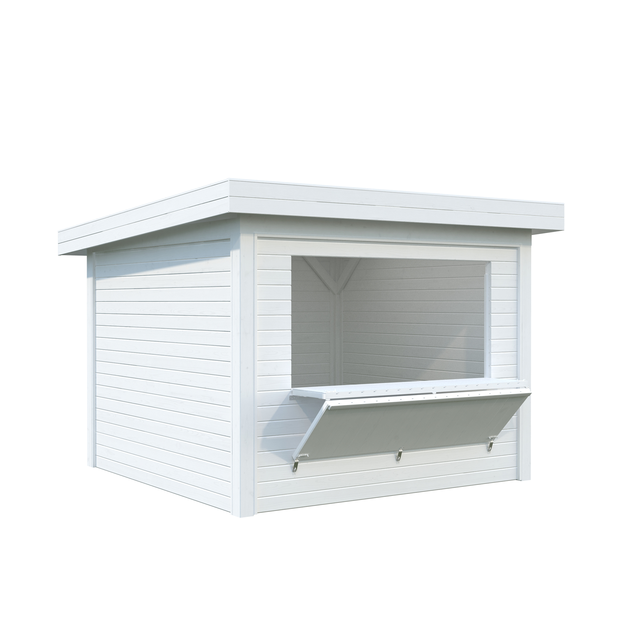 Kiosken är tillverkad av kraftig limträkonstruktion, 19 mm takskiva och 28 mm väggskiva, och är lätt att montera. Tillverkad av nordisk gran med 120x120 mm starka limträstolpar och 19 mm takbrädor. 28 mm väggstockar.