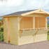 Marknadskiosken Stella är en bod för försäljare som vill bjuda det bästa för stämningen. Kiosken har under skyddstak två luckor som kan öppnas separat eller samtidigt. Bakdörren har cylinderlås. Kiosken är tillverkad i långsamtväxande nordisk gran, ett hållbart material med hög kvalitet och särskilt anpassad för de svenska tuffa väderförhållandena. Kiosken levereras i färdiga väggelement med alla nödvändiga fästelement inkluderade. Alla övriga detaljer är färdigkapade vilket gör den enkel att bygga ihop på rätt sätt.