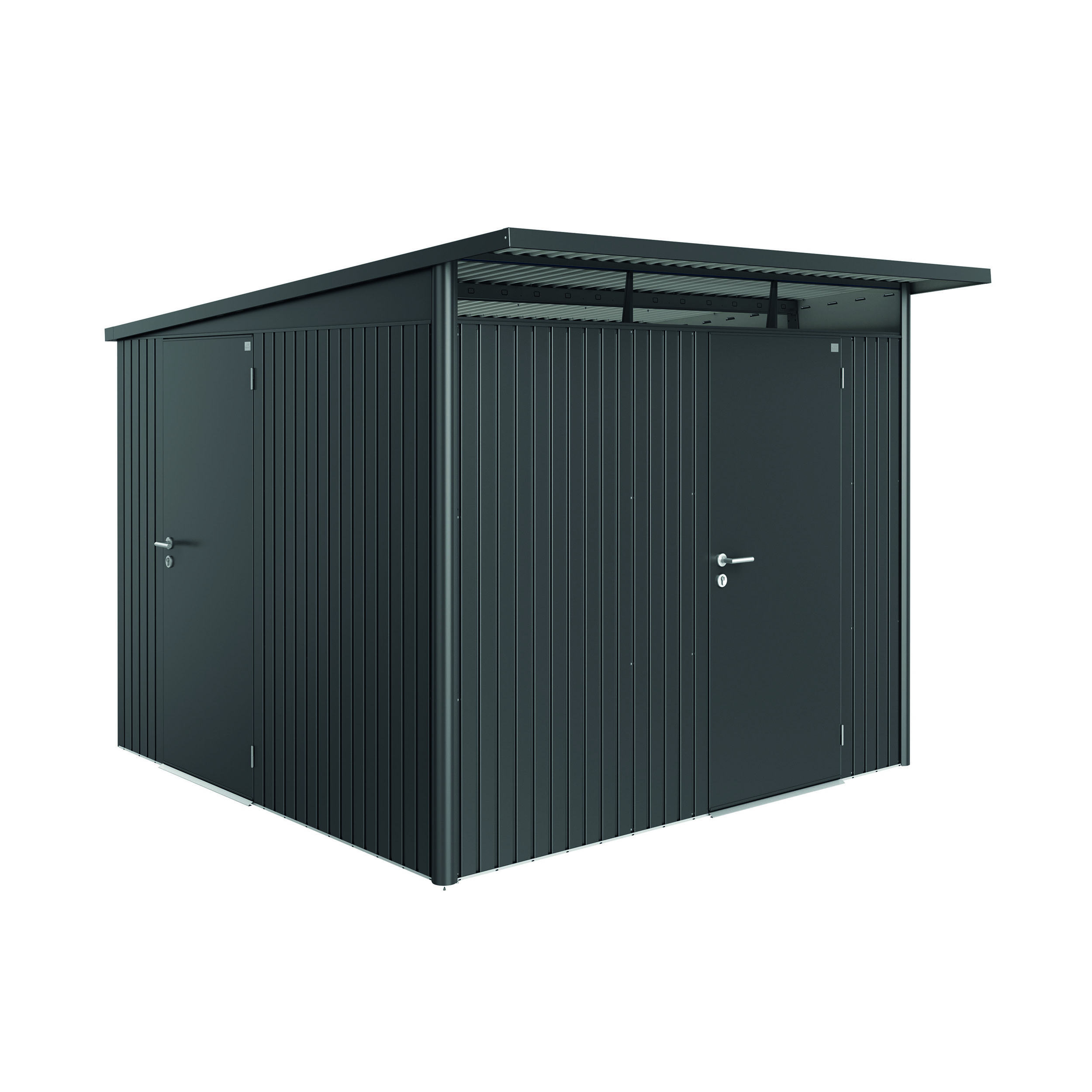 Redskapsbod Biohort AvantGarde A7 är en redskapsbod med pulpettak av hög kvalitet. AvantGarde® är en extremt robust och stabil friggebod i metall.