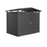 Redskapsbod Biohort Panorama P2 har ett omslutningsfönster av akrylglas som ger ett unikt ljusinsläpp och gör att modellen med sitt moderna gaveltak, passar in bra i