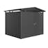 Redskapsbod Biohort Panorama P3 har ett omslutningsfönster av akrylglas som ger ett unikt ljusinsläpp och gör att modellen med sitt moderna gaveltak, passar in bra i