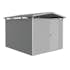 Redskapsbod Biohort Panorama P1 har ett omslutningsfönster av akrylglas som ger ett unikt ljusinsläpp och gör att modellen med sitt moderna gaveltak, passar in bra i