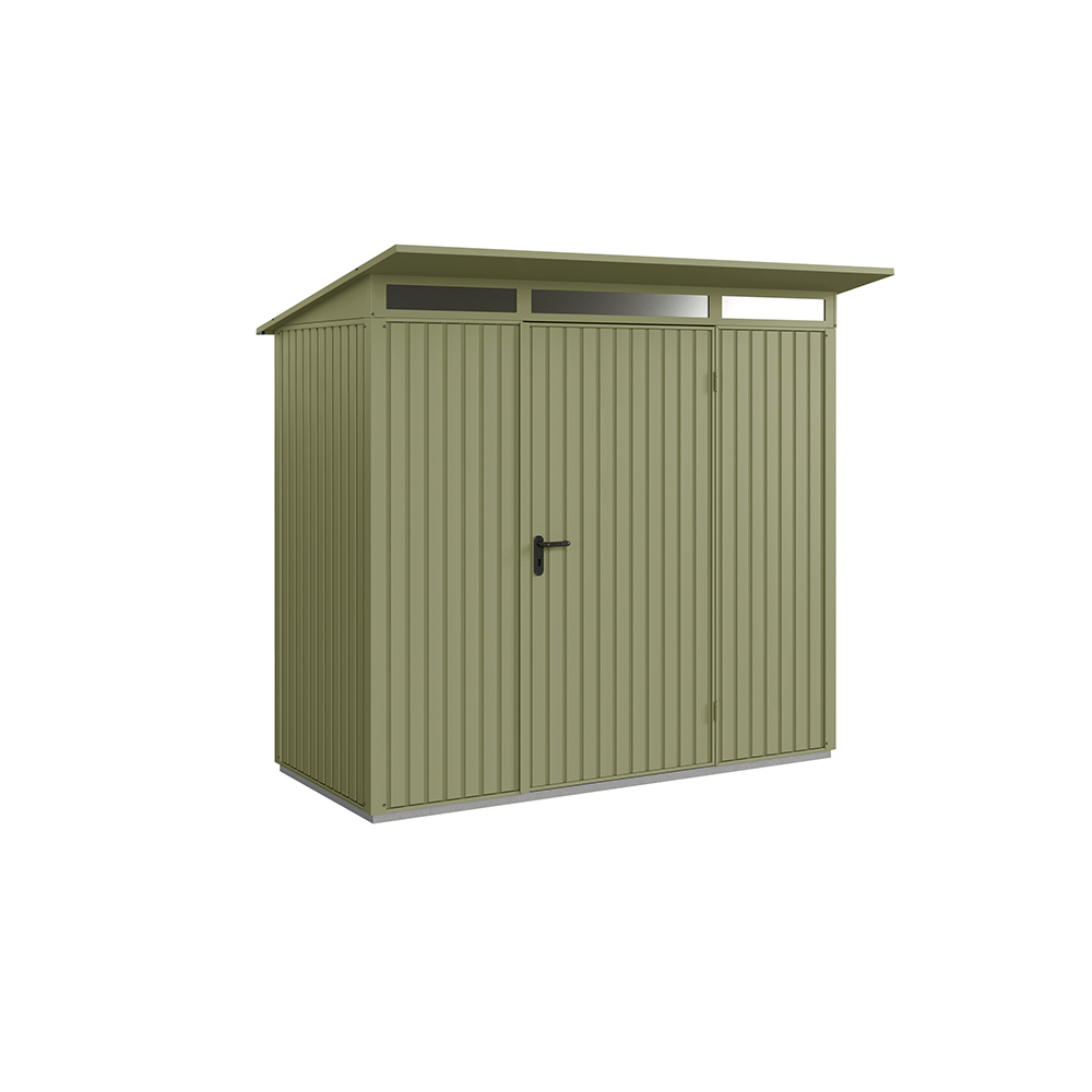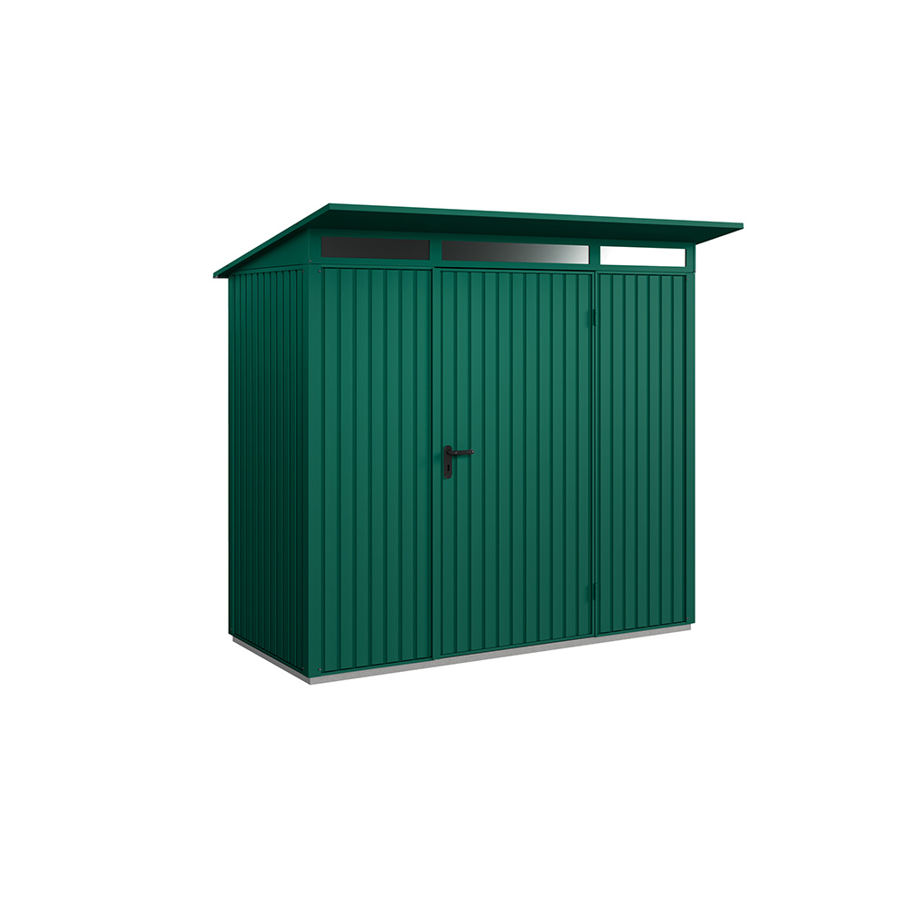 Det finns många fördelar med en redskapsbod i metall. Den galvaniserade och pulverlackerade stålplåten håller formen och kräver lite underhåll, är både väder- och mögelbeständig. Plåten som används består till 25% återvunnet material och redskapsbodarna samt vedbodarna är 100% återvinningsbara.