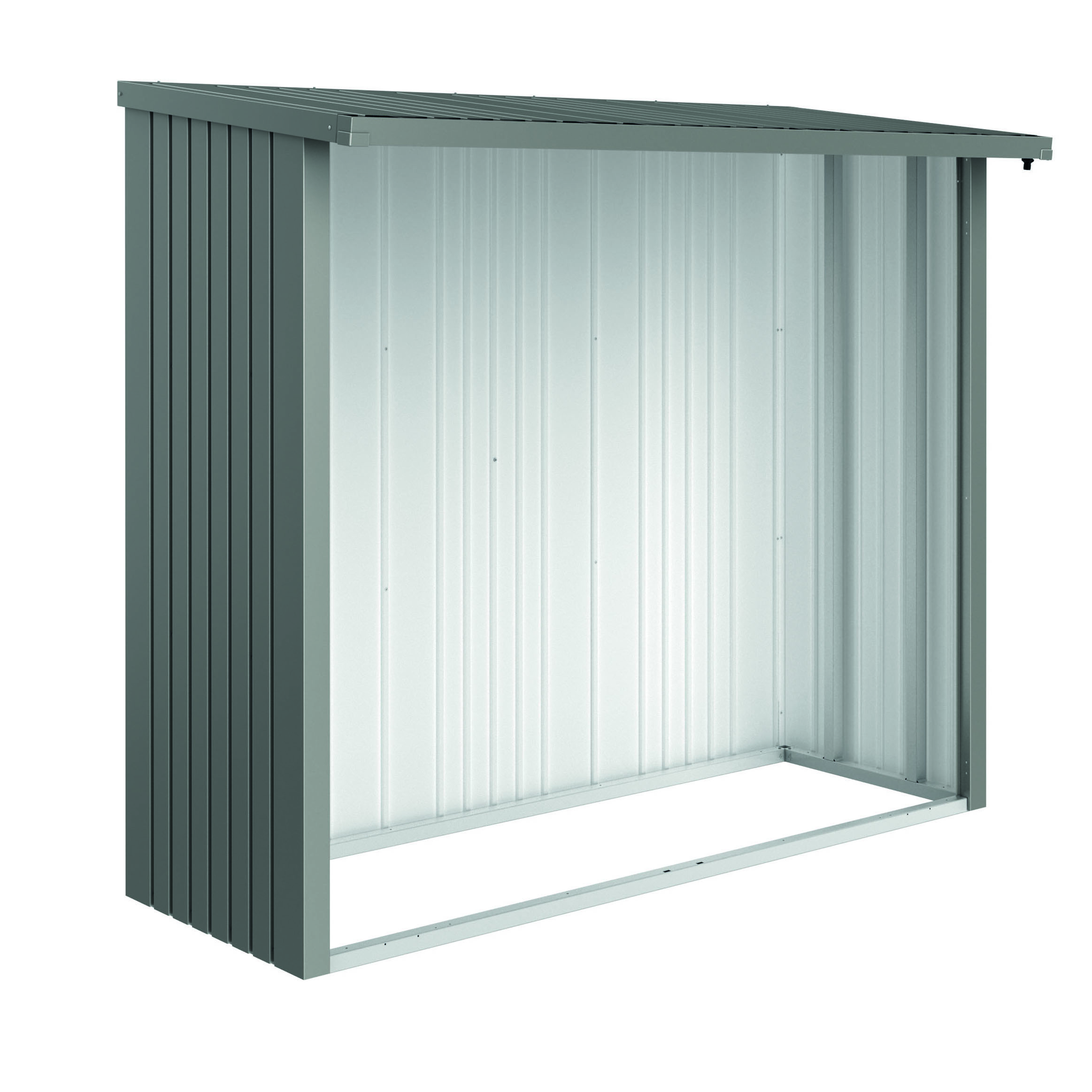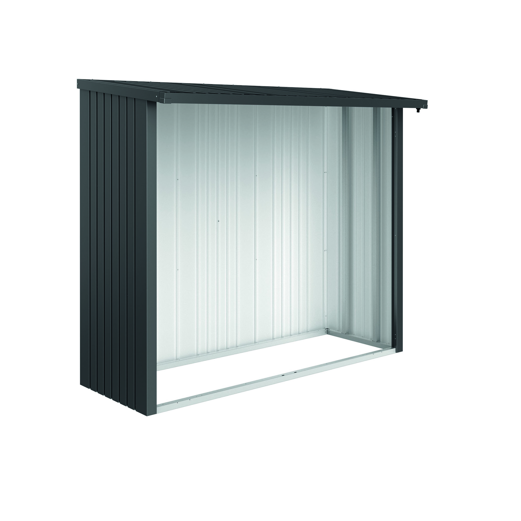 Bakvägg Biohort Woodstock 230 passar till vedförråd Woodstock och är tillverkad av galvaniserad, polyamidemaljerad stålplåt.