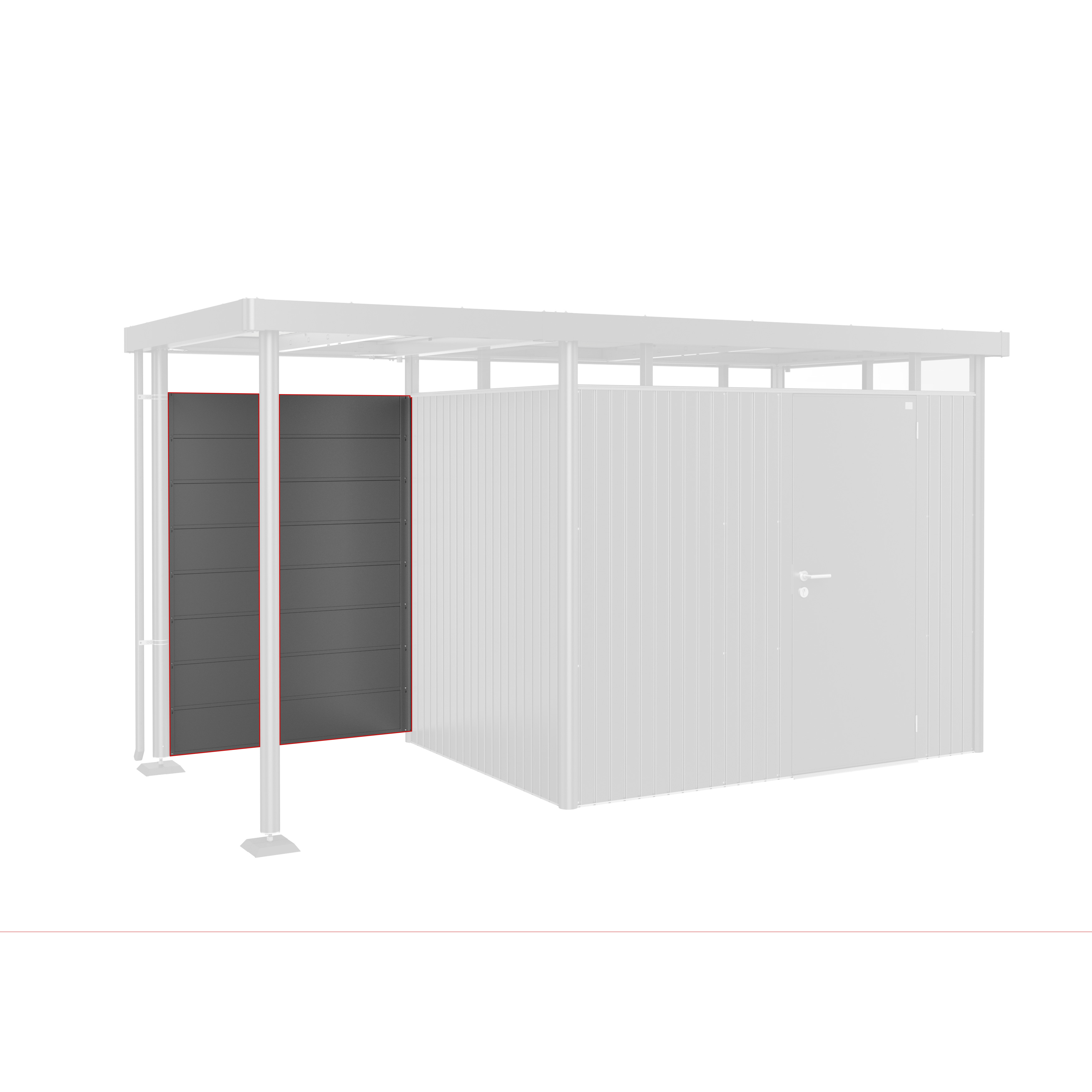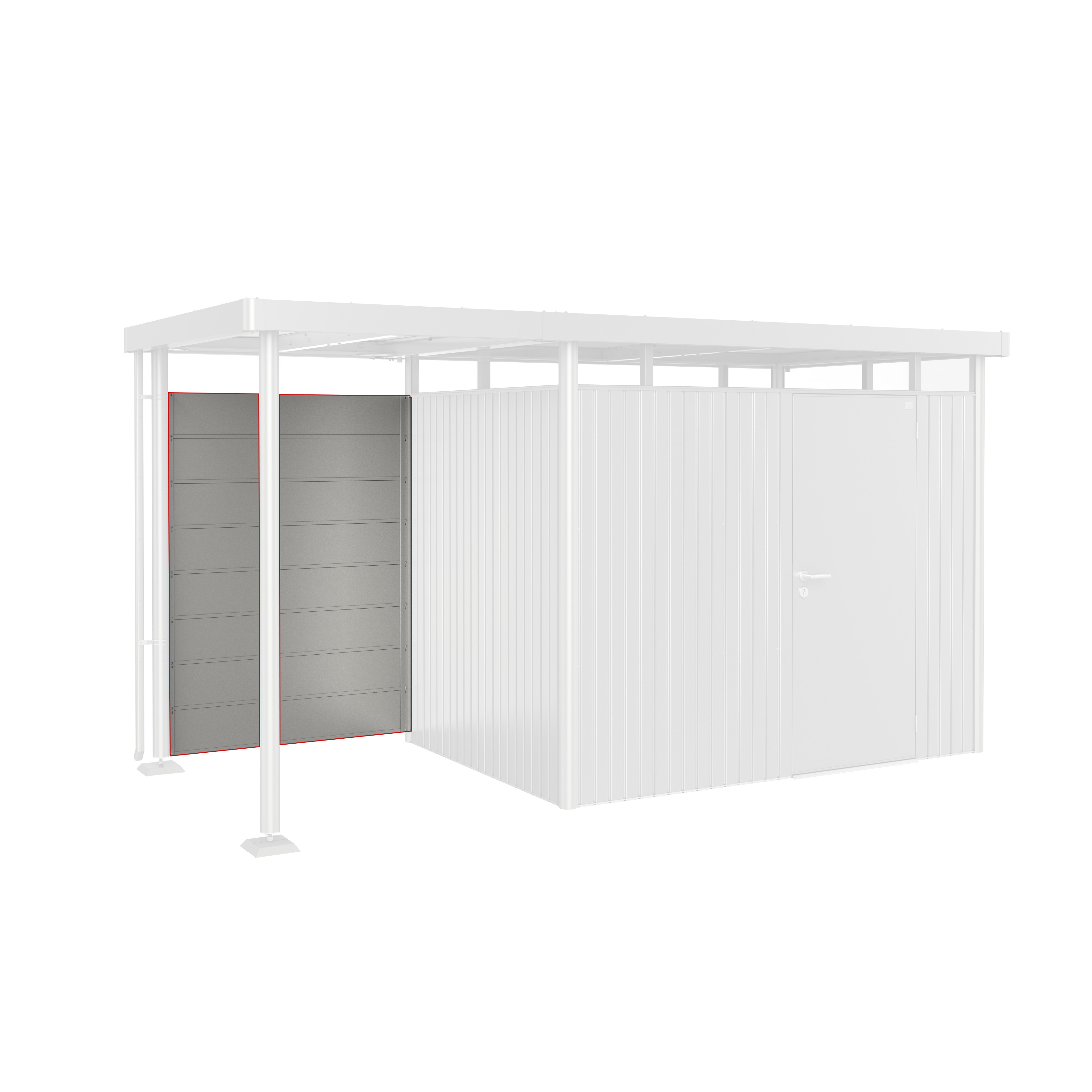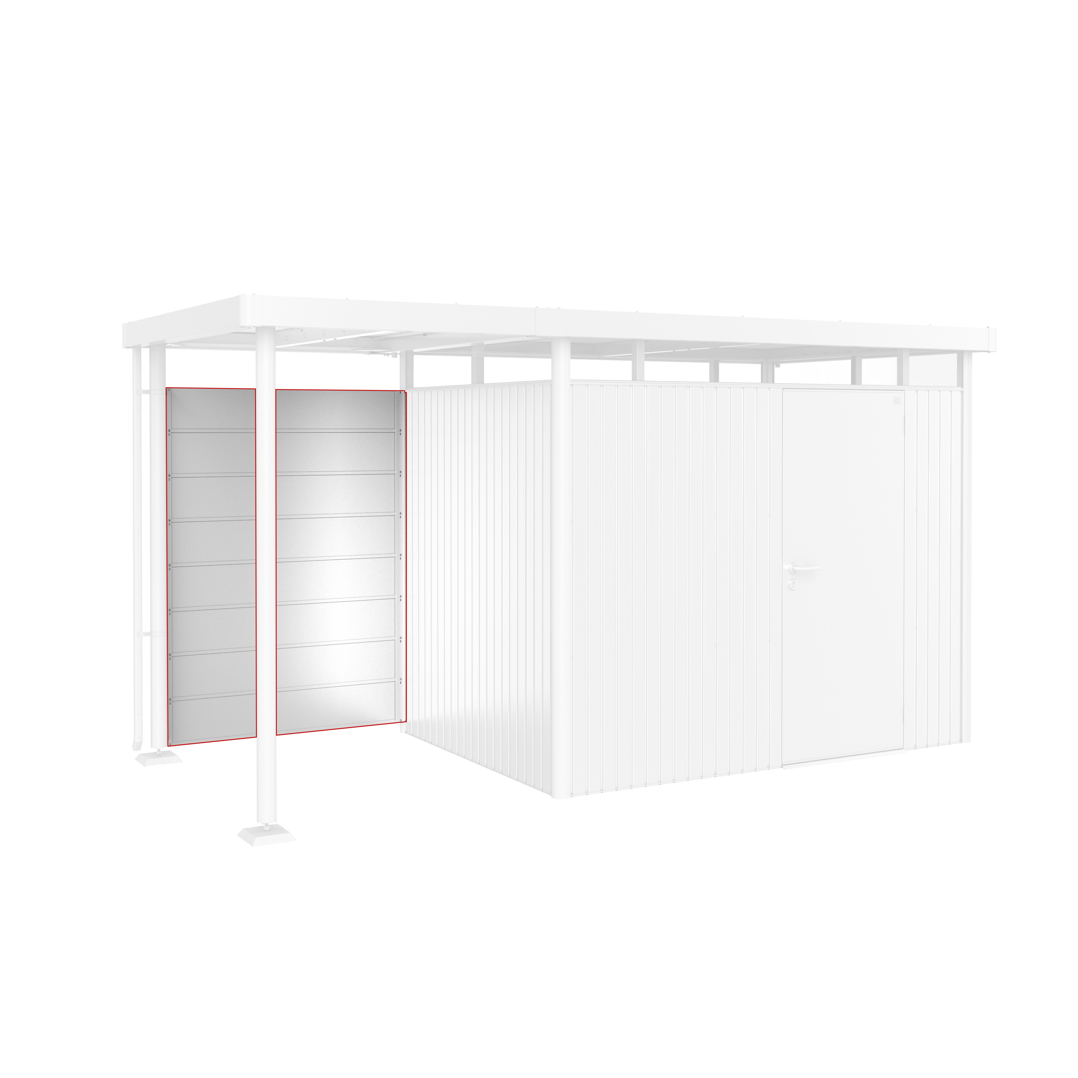 Du kan fästa en bakvägg och/eller en sidovägg mot sidotaket på din HighLine®-bod (från storlek H2)/Neo (från storlek 2A). De finns i samma färger som boden.