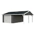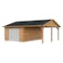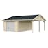 Palmakos garage Roger 19,0+16,2 m2 med solid 44 mm knuttimmervägg är inte bara den perfekta lösningen för att hålla din bil säkert inomhus, utan den har också funktionaliteten att behålla dina familjefordon under den skyddande carporten, samtidigt som det ger extra utrymme för dina förvaringsbehov. De generösa måtten gör att du kan parkera din bil bekvämt och har extra utrymme för verktyg, cyklar och andra föremål.