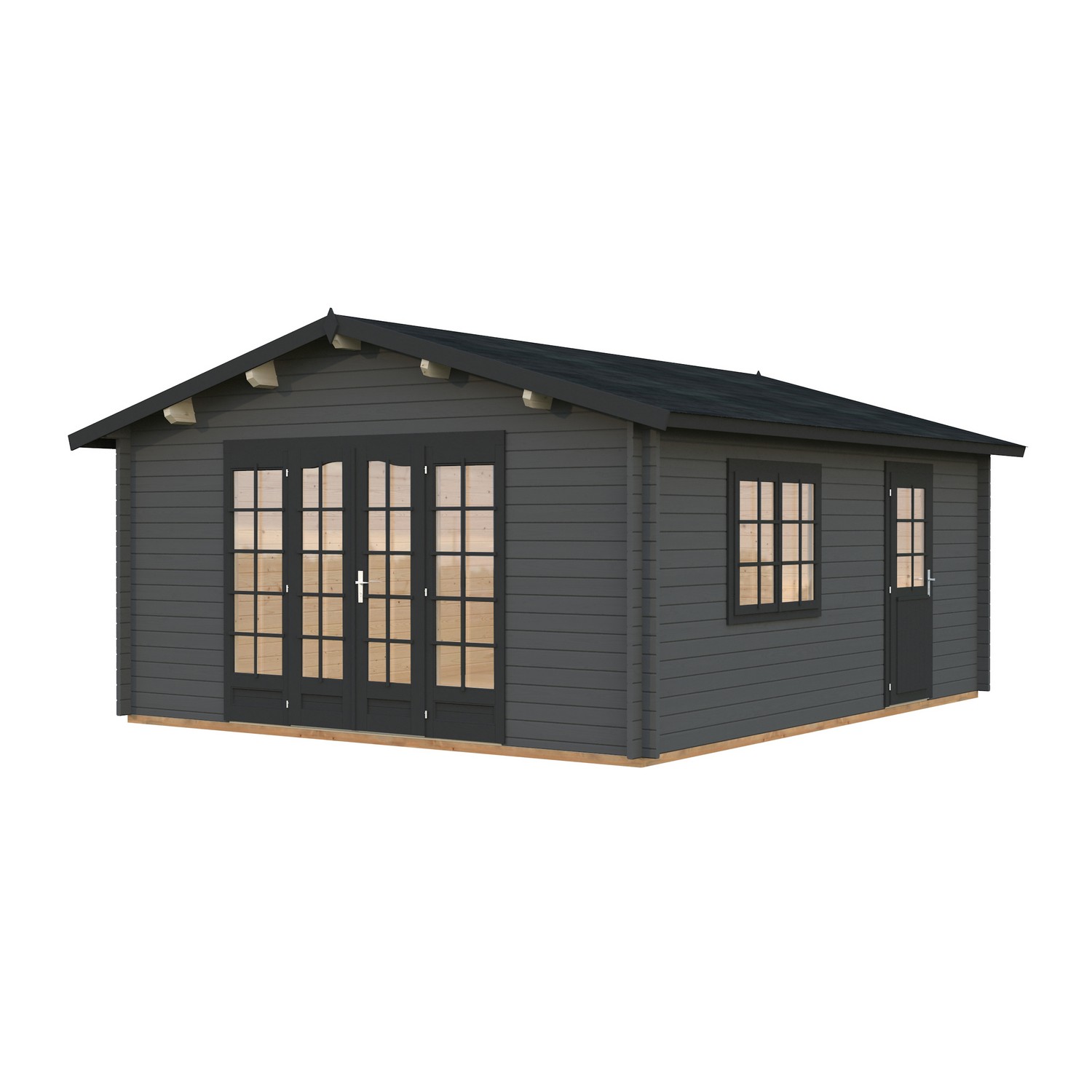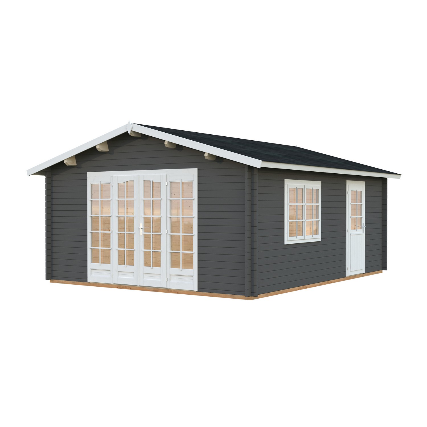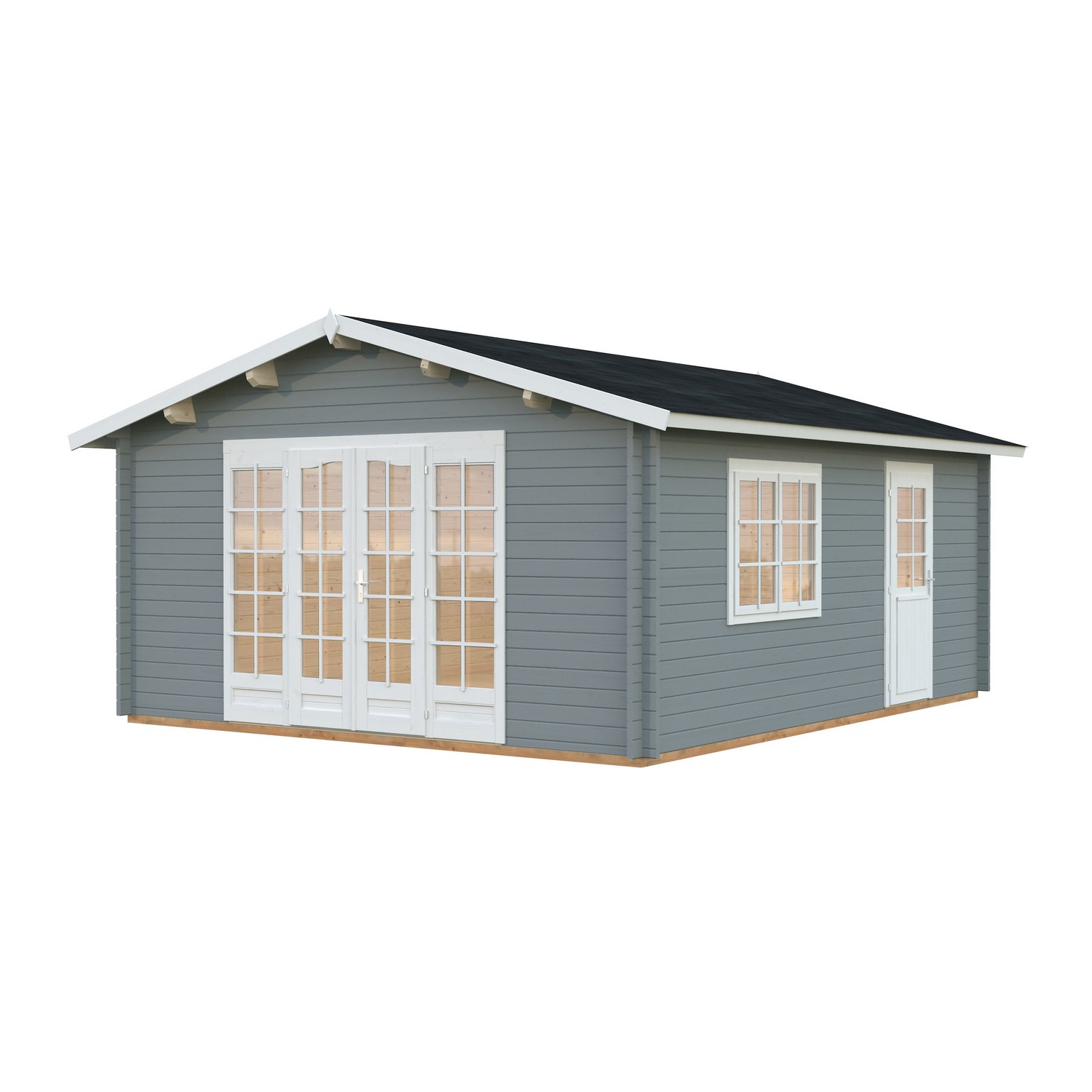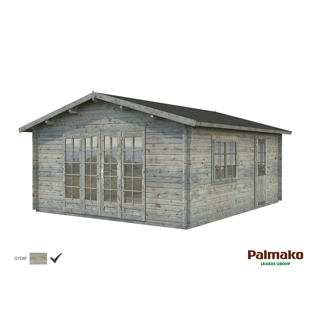 Stugan Irene från Palmako är en knuttimrad stuga med maximalt ljusinsläpp. Dubbeldörrarna kan öppnas upp och sudda ut gränsen mellan inne och ute. En perfekt plats för att samla dina nära och kära i din trädgård, eller kan användas som gästhus. Stugan knuttimras med 44mm tjocka väggar. Stugan är tillverkad i långsamtväxande nordisk gran, ett hållbart material med hög kvalitet och särskilt anpassat för de tuffa svenska väderförhållandena. Att knuttimra är det mest traditionella sättet att bygga stugor och har fortfarande många fördelar som exempelvis att du helt slipper skruvar och spik för att bygga ihop väggarna.