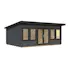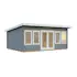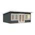 Uthuset Lisa med raka linjerna skapar ett modernt uttryck och blir ett stilfullt inslag i din trädgård. Uthuset knuttimras med 44mm tjocka väggar och har en glasad dubbeldörr med fönster ända ner till golvet och två dubbelfönster som garanterar härligt ljusinsläpp.