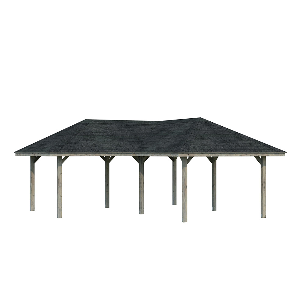 Stugan är tillverkad av långsamväxande nordisk gran, med 120x120 mm starka limträstolpar och 19 mm takbrädor. Ett slitstarkt och högkvalitativt material som är särskilt anpassat till de tuffa svenska väderförhållandena. Levereras som byggsats inklusive alla fästelement.