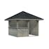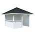 Stugan är tillverkad av långsamväxande nordisk gran, med 120x120 mm starka limträstolpar, 19 mm takbrädor och 28 mm väggstockar.. Ett slitstarkt och högkvalitativt material som är särskilt anpassat till de tuffa svenska väderförhållandena. Levereras som byggsats inklusive alla fästelement.