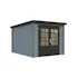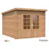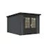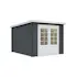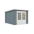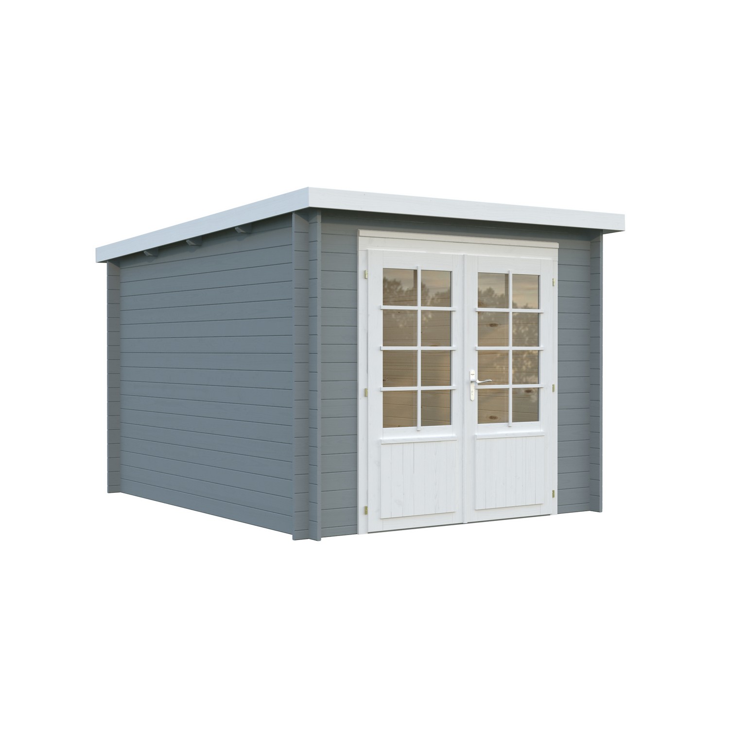 Uthuset Ella med det flacka taket och raka linjerna skapar ett modernt uttryck och blir ett stilfullt inslag i din trädgård. Uthuset knuttimras med 28mm tjocka väggar och har en halvglasad dubbeldörr med cylinderlås.