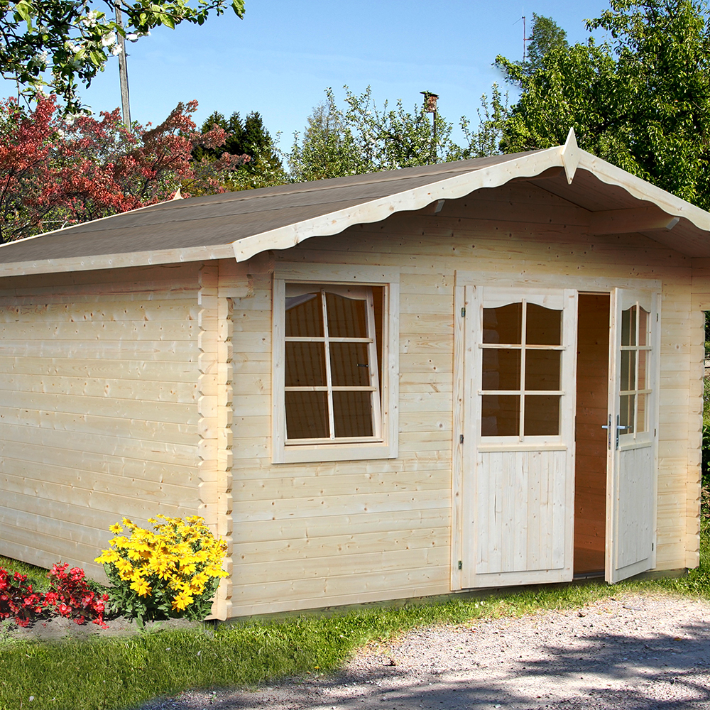 Stugan Emma är en klassisk knuttimrad stuga som med sin detaljrikedom får ett idylliskt uttryck. Stugan är tillverkad i långsamtväxande nordisk gran, ett hållbart material med hög kvalitet och särskilt anpassat för de svenska tuffa väderförhållandena. Att knuttimra är det mest traditionella sättet att bygga stugor och har fortfarande många fördelar som exempelvis att du helt slipper skruvar och spik för att bygga ihop väggarna. En teknik som är enkel även för dig helt utan byggerfarenhet. Stugan levereras i delar som knuttimras ihop och med alla nödvändiga fästelement inkluderade. Alla övriga detaljer är färdigkapade vilket gör den enkel att bygga ihop på rätt sätt.