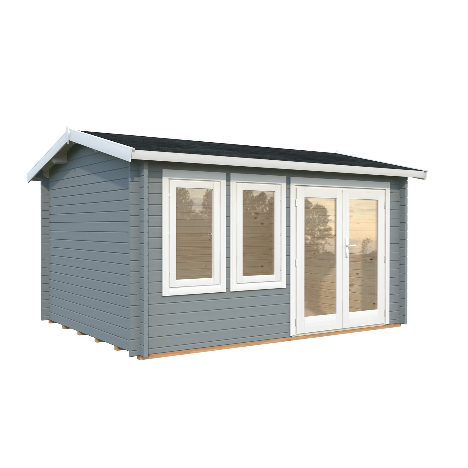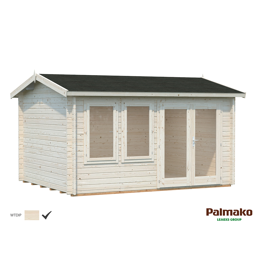 Stugan Iris är en stilren stuga från Palmako med stora fönster som ger ett härligt ljus i stugan. Dubbeldörren har fönster ända ner till golvet. Detta ger ett ännu större ljusinsläpp och gör det möjligt att öppna upp stugan och sudda ut gränsen mellan inne och ute. En modern liten pärla som skapar utrymme för att samla nära och kära i din trädgård. Passar även perfekt som gästhus eller båthus.