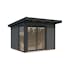 Stuga Andrea är både charmig och mångsidig, designad för att höja den utomhusmiljön med både stil och funktionalitet. Aluminiums skjutdörrar ger enkel åtkomst och tillsammans med ett golv-till-tak fönster på sidan ges ett generöst ljusinsläpp in i rummet.