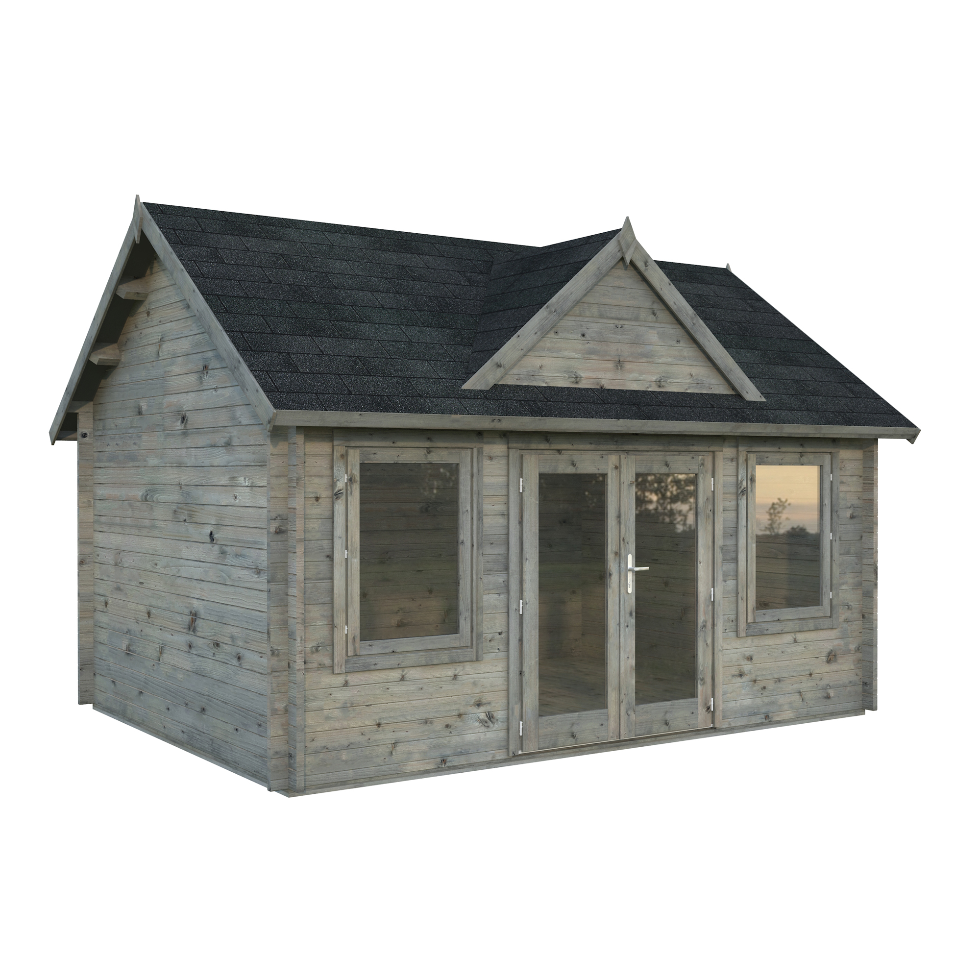 Palmakos stuga Claudia 14,2 m2 visar upp en takdesign i klassisk klockhusstil. Medan många kunder uppskattar det eleganta taket i viktoriansk stil, föredrar andra ett enklare topptak. Av denna anledning är monteringen av takkupan valfri.