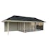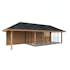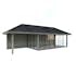 Tillverkad av nordisk gran med 120x120 mm starka limträstolpar och 19 mm takbrädor. Låsbara skjutdörrarna i 24 mm härdat dubbelglas (4 mm härdat glas - 16 mm luftspalt - 4 mm härdat glas) monterat i solida aluminiumprofiler. 28 mm väggstockar.