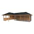 Tillverkad av nordisk gran med 120x120 mm starka limträstolpar och 19 mm takbrädor. Låsbara skjutdörrarna i 24 mm härdat dubbelglas (4 mm härdat glas - 16 mm luftspalt - 4 mm härdat glas) monterat i solida aluminiumprofiler. 28 mm väggstockar.